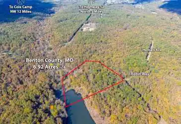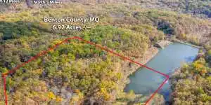 If you are looking for a secluded , behind a locked gate recreation piece of land that is waterfront this is it!! 6.95 acres that is sitting on a 5 acre private lake in Benton county and is between Cole Camp and Stover Mo. Electric pole is on site , just ready for your rv pad, cabin or forever home. Land is mainly all wooded , has a great view of the lake. Rolling terrain great for hunting , ...